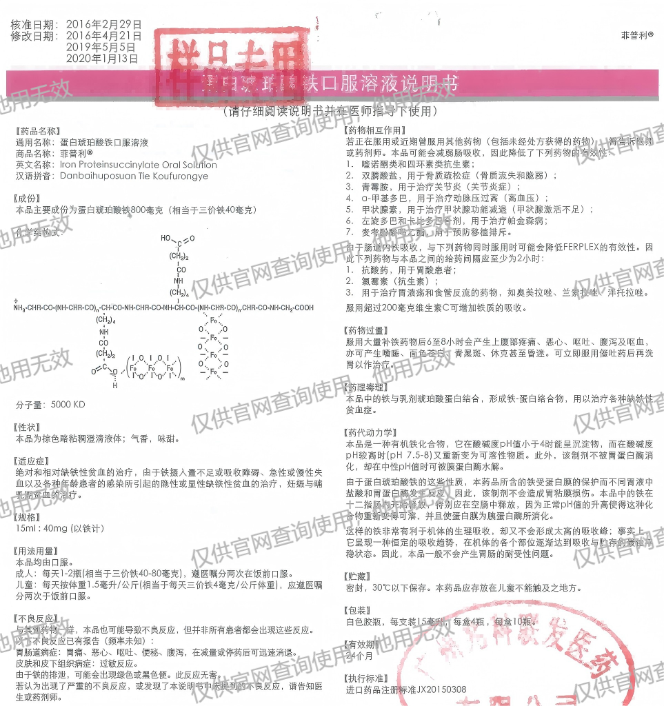 儿童:每天按体重1.5毫升/公斤(相当于每天三价铁4毫克/公斤体重),应遵医嘱分两次于饭前口服。